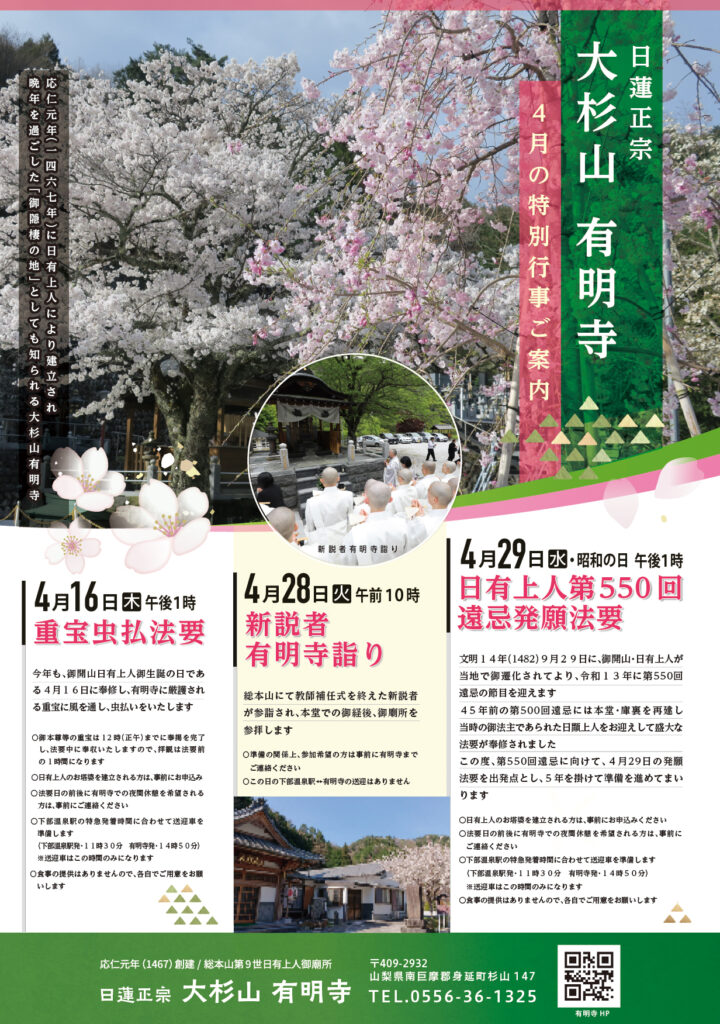 山梨県南巨摩郡身延町・有明寺のWEBサイト